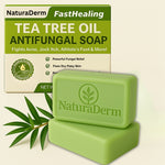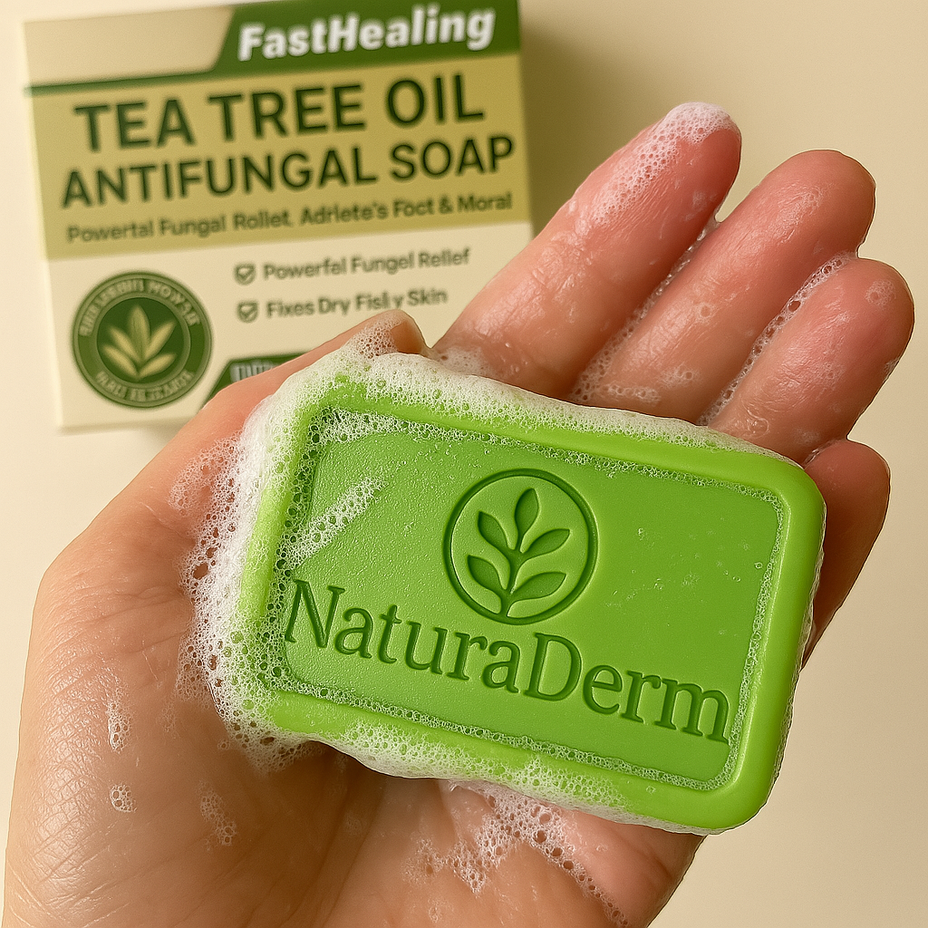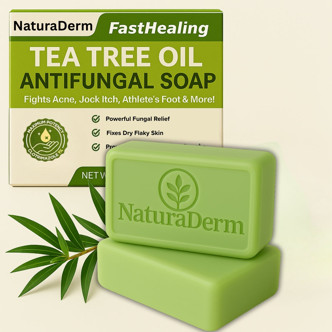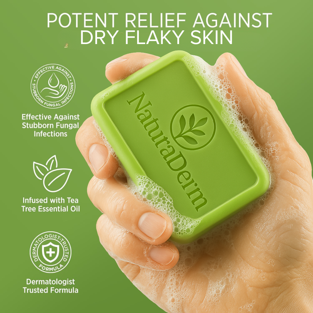 Most people treat seborrheic dermatitis like dry skin — but it needs targeted care. NaturaDerm Antifungal Tea Tree Soap goes deeper, fighting the root cause (Malassezia yeast) with natural antifungal ingredients — while protecting your skin barrier with moisturizing oils.